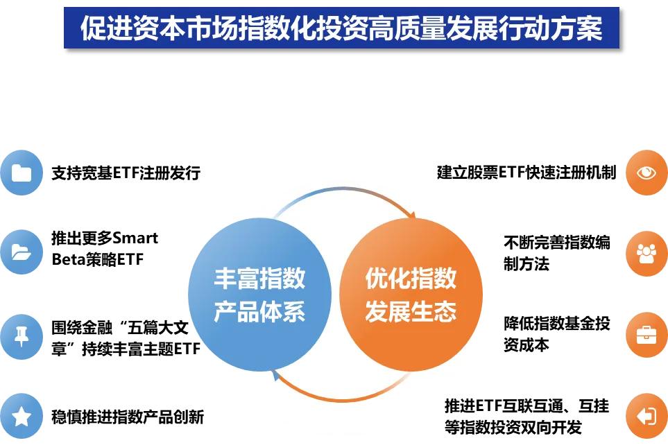 2025年初發(fā)布的《促進資本市場指數(shù)化投資高質量發(fā)展行動方案》再次明確,要持續(xù)加強優(yōu)質指數(shù)供給,不斷豐富指數(shù)產品體系、加快優(yōu)化指數(shù)化投資生態(tài),著力推動資本市場指數(shù)與指數(shù)化投資高質量發(fā)展。