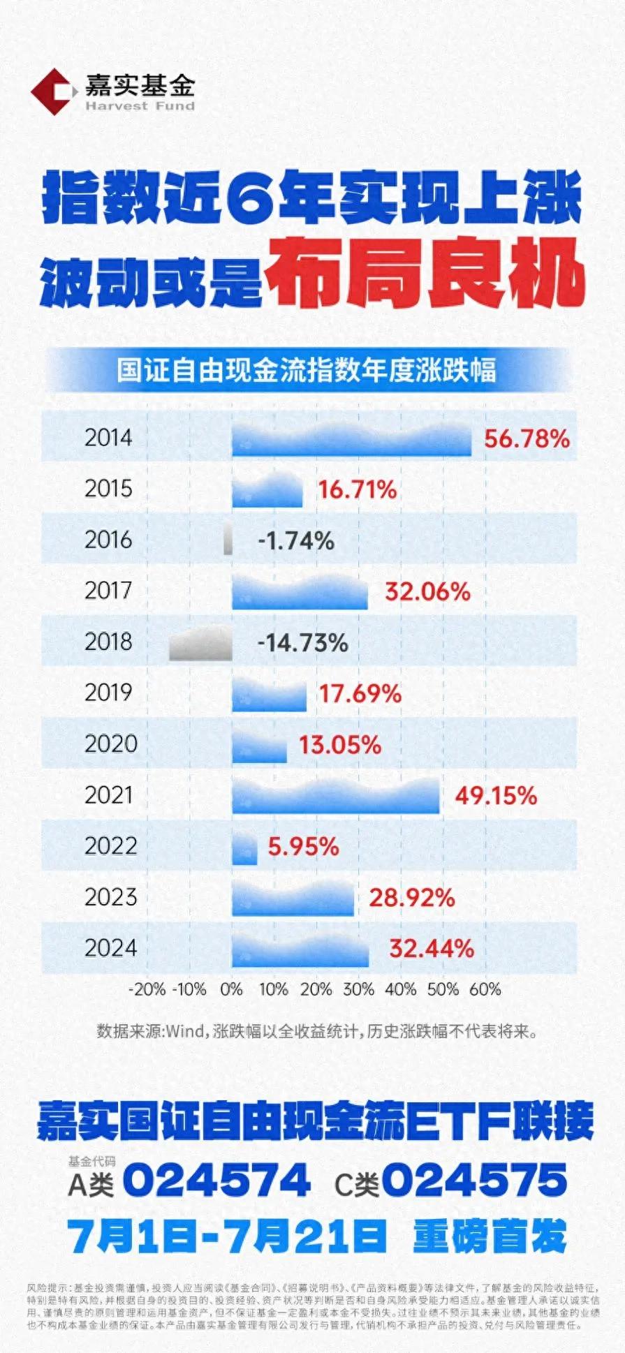 嘉實國證自由現(xiàn)金流ETF聯(lián)接基金(A類024574/C類024575)首發(fā)募集期為7月1日至7月21日。該產品通過投資于嘉實自由現(xiàn)金流ETF,實現(xiàn)對目標指數(shù)的有效跟蹤。