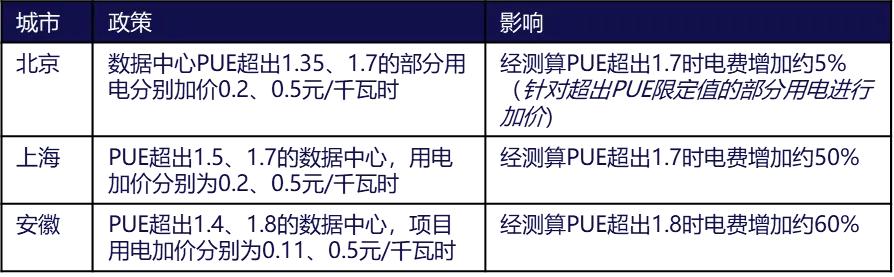 表:各地針對(duì)數(shù)據(jù)中心能效階梯電價(jià)加價(jià)政策的影響